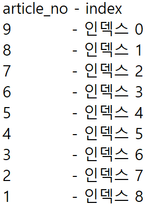 Limit 4,2 ➡️ 인덱스4부터 2개의 레코드인 article_no 5,4를 읽어옴